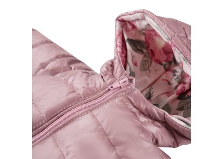 Kurtka z kolekcji "Roses , uszyta z miękkiej i przyjemnej w dotyku tkaniny pikowanej. Posiada bawełnianą podszewkę. Krój umożliwia całkowite rozpięcie, przez co ubranko jest funkcjonalne i wygodne. Zamek przy szyjce został zabezpieczony przed przycięciem. Wykończona miękkimi lamówkami. Wyprodukowana w Polsce, posiada certyfikat "Bezpieczny dla dziecka".