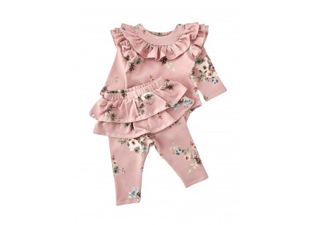Wygodne leginsy z falbankami naszytymi dookoła. Uszyte z organicznego jerseyu, do kompletu możecie dobrać body w ten sam wzór.