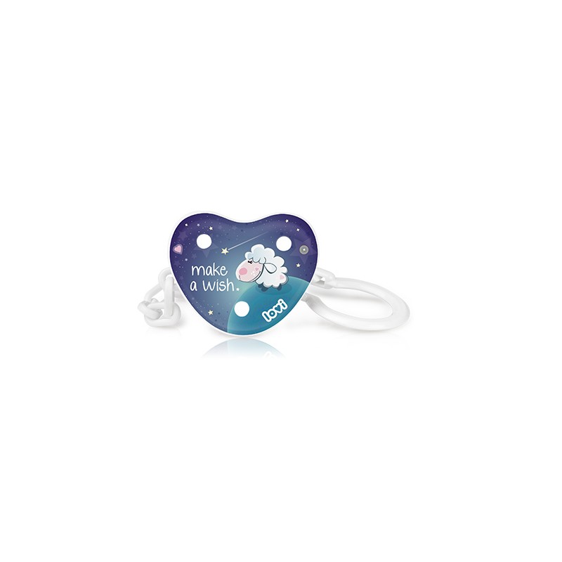 Tu łańcuszek oferujemy we wzorze Night & Day ze wzorem owieczki na tle nocnego nieba. Słodki wzór uzupełniony jest napisem „Make w wish”, czyli „Pomyśl życzenie” oraz logo firmy LOVI.