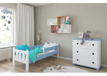 Łóżko dziecięce z barierką 160X80 LEO biało niebieskie