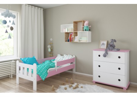 Łóżko dziecięce z barierką 160X80 LEO biało różowy