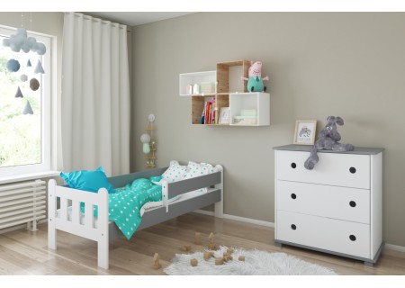 Łóżko dziecięce z barierką 160X80 LEO biało szare