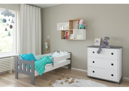Łóżko dziecięce z barierką 160X80 LEO szaro białe
