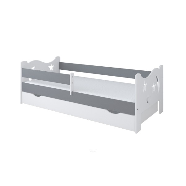 Łóżko dziecięce z szufladą z barierką 160X80 BETTY biało szary