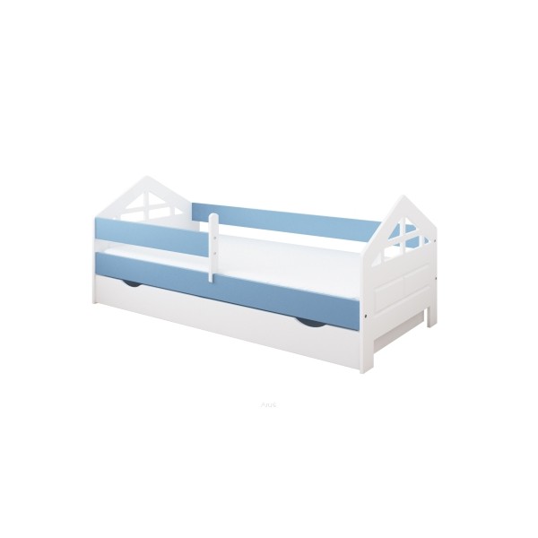 Łóżko dziecięce z szufladą z barierką 160X80 BONNIE biało niebieski