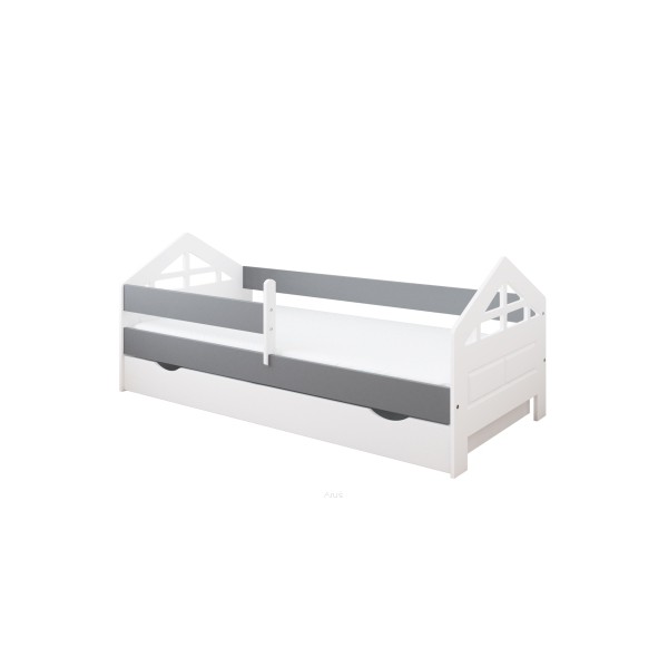 Łóżko dziecięce z szufladą z barierką 160X80 BONNIE biało szary