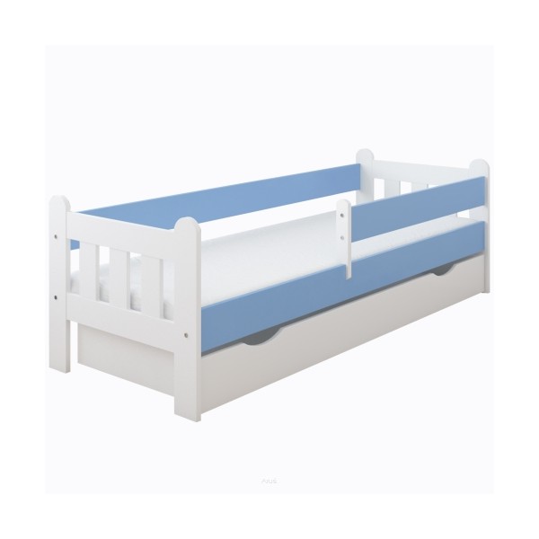 Łóżko dziecięce z szufladą z barierką 160X80 LEO biało niebieski