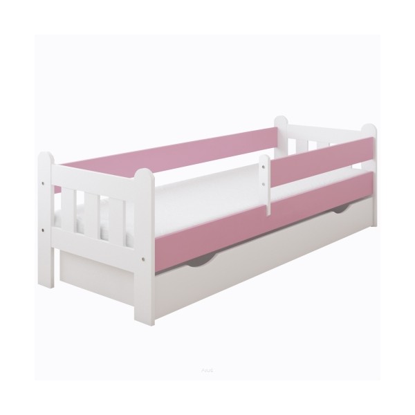 Łóżko dziecięce z szufladą z barierką 160X80 LEO biało różowy