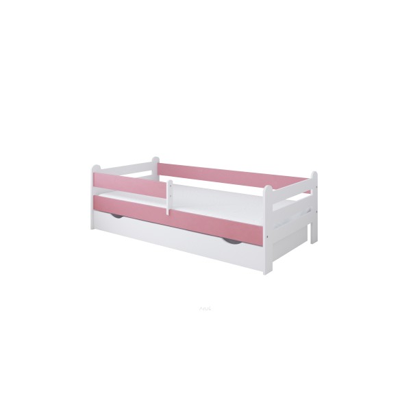 Łóżko dziecięce z szufladą z barierką 160X80 LIAM biało różowy