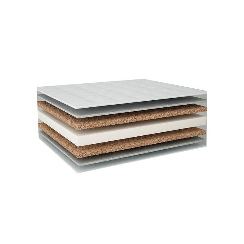 Materac składa się z 3 warstw : maty kokosowej, pianki poliuretanowej i maty kokosowej