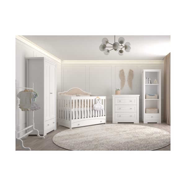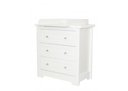 Komoda wykonana została w całości z płyty meblowej i płyty MDF lakierowanej farbą wodną w białym kolorze , stanowi idealną parę z łóżeczkiem Carmen