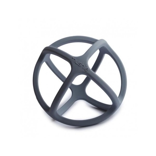 Sensoryczny gryzak 3D wykonany z wytrzymałego elastomeru silikonowego w kształcie ażurowej sferoidy marki Mushie.