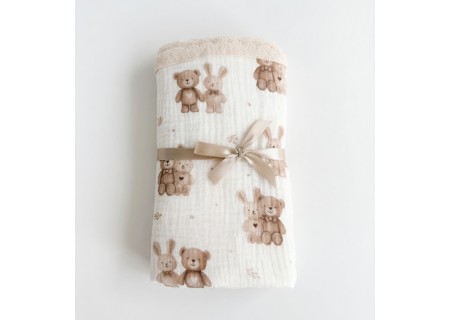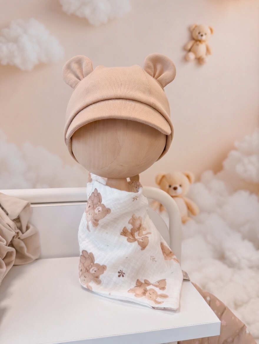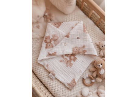 • Pielęgnacja: pranie 30–40°C, można suszyć w suszarce (muślin staje się jeszcze miększy)