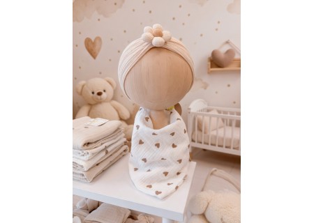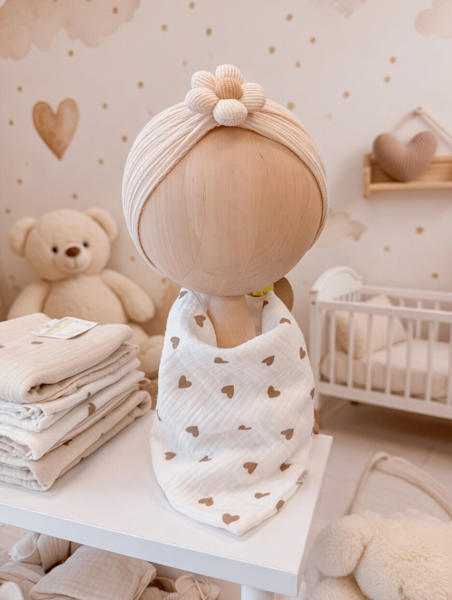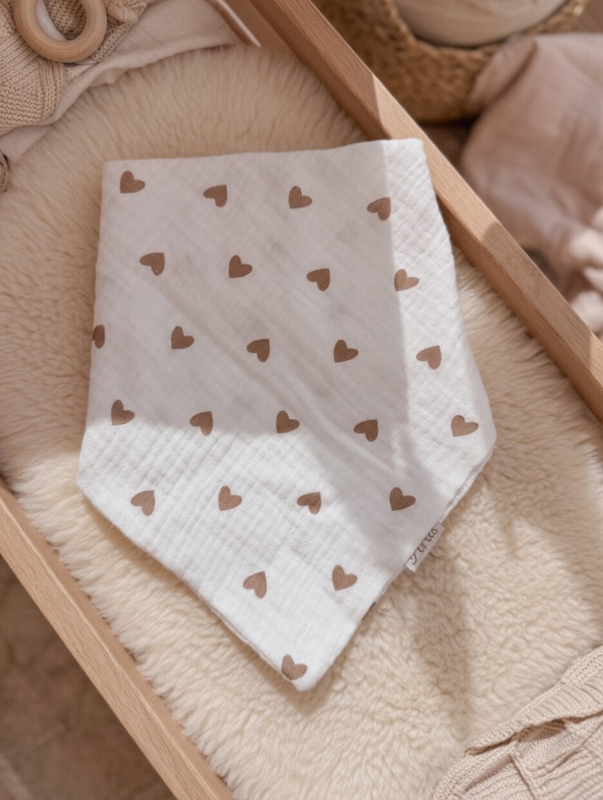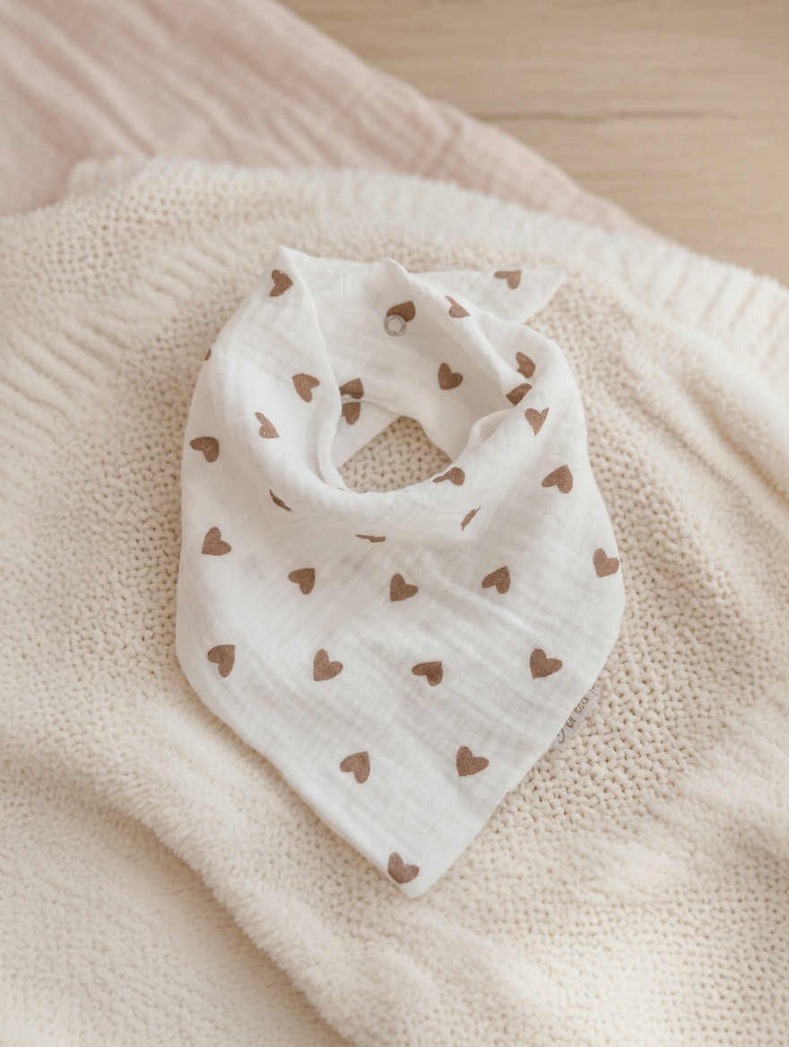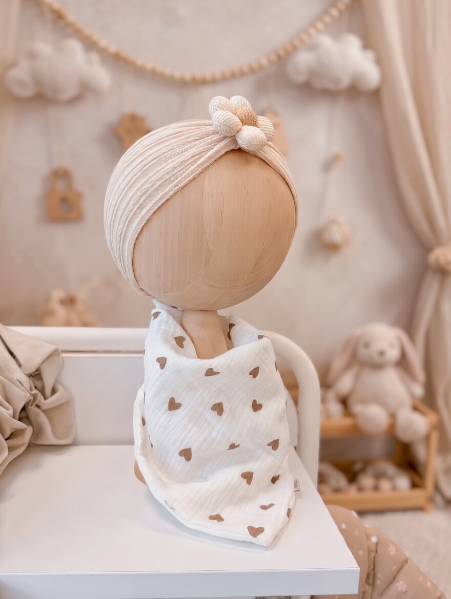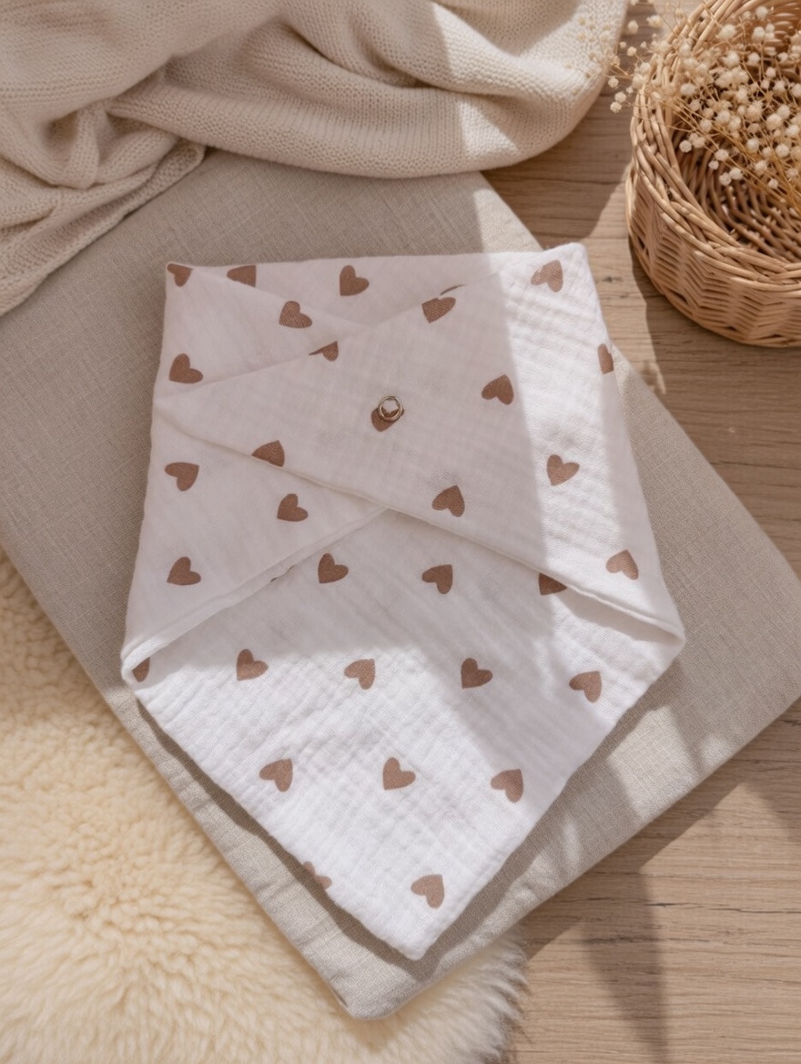 Ręcznie szyta chustka z 100% muślinu bawełnianego premium. Delikatna, lekka i oddychająca – stworzona specjalnie dla wrażliwej skóry niemowląt.