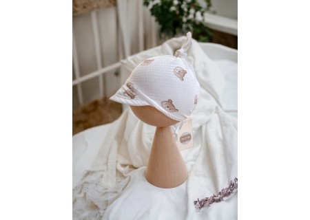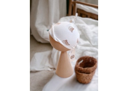 Niezwykle delikatna, przyjemna w dotyku, lekka i przewiewna. Sprawdzi się podczas letnich upałów, osłaniając główkę oraz oczy dziecka przed słońcem. Produkt został wykonany z naturalnej tkaniny muślinowej, która jest idealna dla wrażliwej skóry niemowlaka.