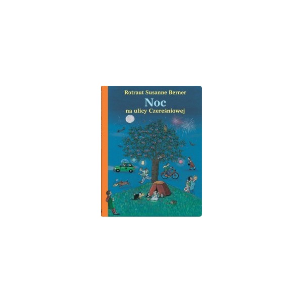 Pełna zabawnych szczegółów, sympatycznych postaci i ujmująco codziennych sytuacji książka obrazkowa, w której nie pada ani jedno słowo. Nocna wyszukiwanka z bestsellerowej serii, która podbiła świat. Zapada noc. Ludzie i zwierzęta układają się do snu. Ale nie wszyscy spędzą tę noc w ciepłym łóżku. Niektórzy wybrali się na nocne czytanie do biblioteki. Albo na festyn w parku, by podziwiać fajerwerki. Inni wolą spacer przy świetle księżyca. A są i tacy, którzy ruszają w pościg za włamywaczem. Zobacz, jak wiele się dzieje na ulicy Czereśniowej w ciepłą letnią noc. Każda strona tej książki to barwna, pełna szczegółów i postaci ilustracja przedstawiająca fragment miasta. Na kolejnych rozkładówkach odnajdujemy tych samych bohaterów w różnych miejscach i momentach dnia. Wypatrywanie ich i układanie opowieści o ich przygodach to wciągająca zabawa na długie godziny. Ciepłe ilustracje Rotraut Susanne Berner, jej sympatyczni bohaterowie, humor i pogodny klimat ulicy Czereśniowej oczarowały już tysiące małych czytelników na całym świecie. Noc na ulicy Czereśniowej razem z Wiosną..., Latem..., Jesienią... i Zimą tworzy serię, która jak dotąd ukazała się w 15 krajach w łącznym nakładzie niemal 1 000 000 egzemplarzy.