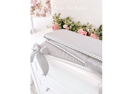 Ochraniacz Lace– zapewnia skuteczne zabezpieczanie główki dziecka przed uderzeniami o szczebelki. W skład ochraniacza wchodzą trzy poduszki (wkłady) wykończone białą bawełną i wypełnione puszystą prasowana włókniną poliestrową, a także trzy poszewki z zameczkiem. Dzięki takiej konstrukcji można łatwo utrzymać ochraniacz w czystości. Poszewki ochraniacza wykończone od góry bawełnianą koronką, przymocowywany do łóżeczka szerokimi wiązaniami tworzącymi dużą kokardkę.