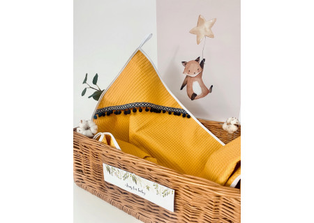 Okrycie kąpielowe z kapturkiem z nowej kolekcji Boho to produkt, który idealnie sprawdzi się, gdy chcemy owinąć dziecko po kąpieli. Jako bazę wykorzystaliśmy 100% bawełnę, tkaną w taki sposób aby powstał splot przypominający strukturę wafelka. Dzięki zastosowaniu tego wyjątkowego splotu, okrycie staje się bardziej chłonne. Obszerne kapturki ozdobiliśmy elegancką koronką lub pomponikami . Postawiliśmy na duży rozmiar 100×100cm, aby owinięcie dziecka było jeszcze łatwiejsze.