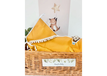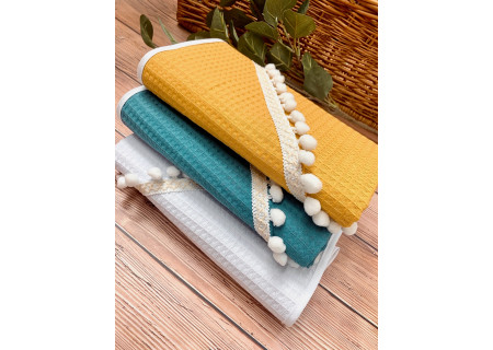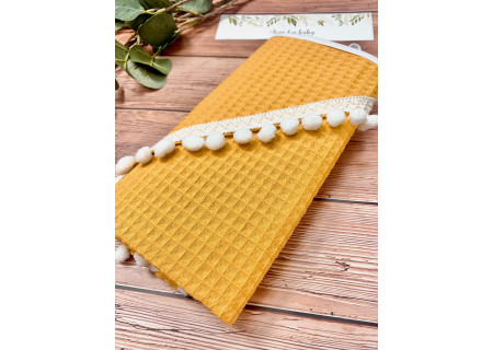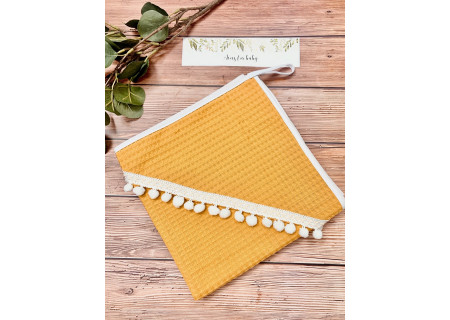 Okrycie kąpielowe 100x100 Boho collection white pompons mustard