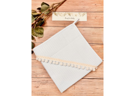 Okrycie kąpielowe 100x100 Boho collection pompons white