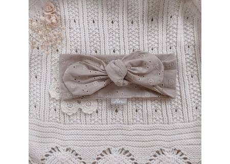 Opaska dla niemowląt i dzieci stworzona w stu procentach z tkaniny bawełnianej haftowanej. Idealnie sprawdza się w upalne dni. Wykonana ręcznie z dbałością o każdy szczegół doda maluszkowi uroku.