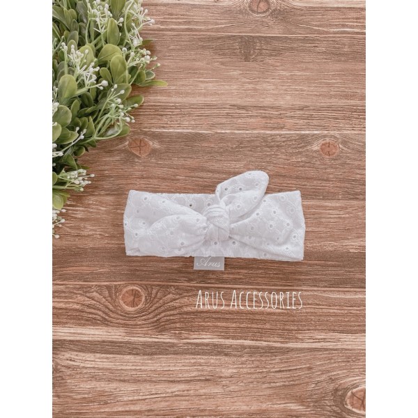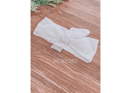 Opaska dla niemowląt i dzieci stworzona w stu procentach z wysokiej jakości tkaniny bawełnianej. Tkanina posiada w swojej fakturze hafty.. Dodatek Idealnie sprawdza się w upalne i nieco chłodniejsze dni. Wykonana ręcznie z dbałością o każdy szczegół.