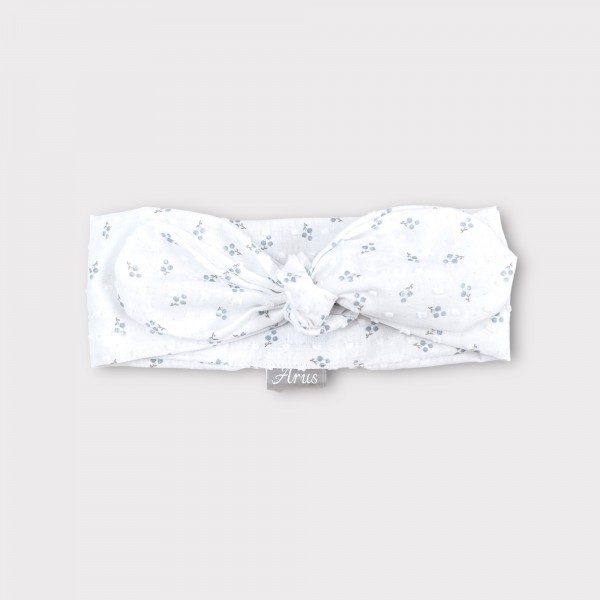 Opaska dla niemowląt i dzieci stworzona w stu procentach z bawełny plumetti. Tkanina w swojej fakturze posiada delikatne haftowane kropeczki. Idealnie sprawdza się w upalne dni. Wykonana ręcznie z dbałością o każdy szczegół doda maluszkowi uroku.