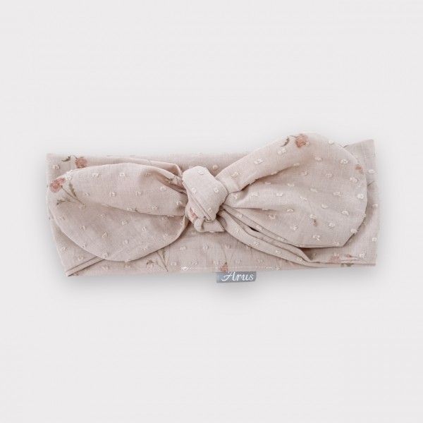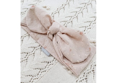 Opaska dla niemowląt i dzieci stworzona w stu procentach z bawełny plumetti. Tkanina w swojej fakturze posiada delikatne haftowane kropeczki. Idealnie sprawdza się w upalne dni. Wykonana ręcznie z dbałością o każdy szczegół doda maluszkowi uroku.