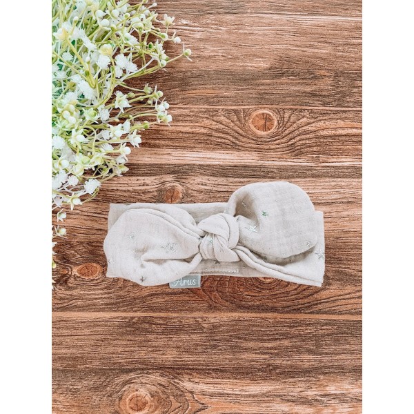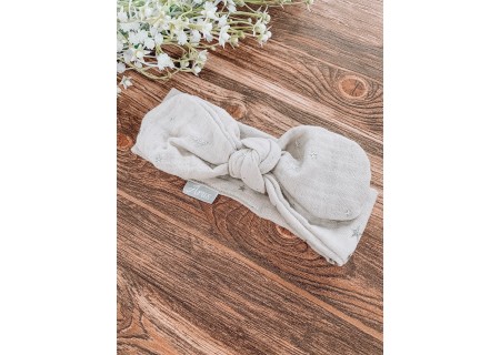 Opaska dla niemowląt i dzieci stworzona w stu procentach z Eco muśliny bawełnianej. Idealnie sprawdza się w upalne dni. Wykonana ręcznie z dbałością o każdy szczegół, doda maluszkowi uroku.