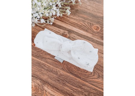 Opaska dla niemowląt i dzieci stworzona w stu procentach z Eco muśliny bawełnianej. Idealnie sprawdza się w upalne dni. Wykonana ręcznie z dbałością o każdy szczegół, doda maluszkowi uroku.