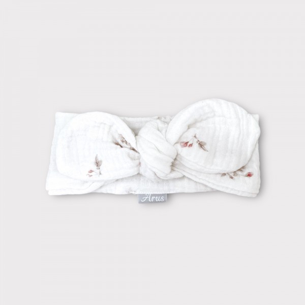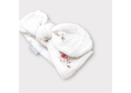 Opaska dla niemowląt i dzieci stworzona w stu procentach z muśliny bawełnianej. Idealnie sprawdza się w upalne dni. Wykonana ręcznie z dbałością o każdy szczegół doda maluszkowi uroku.