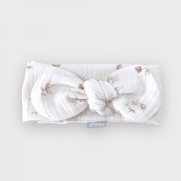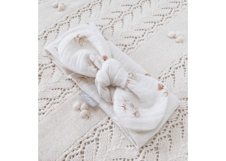 Opaska dla niemowląt i dzieci stworzona w stu procentach z muśliny bawełnianej. Idealnie sprawdza się w upalne dni. Wykonana ręcznie z dbałością o każdy szczegół doda maluszkowi uroku.