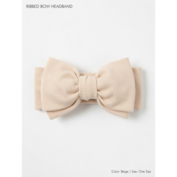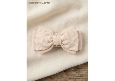 Opaska prążek z kokardą beżowa