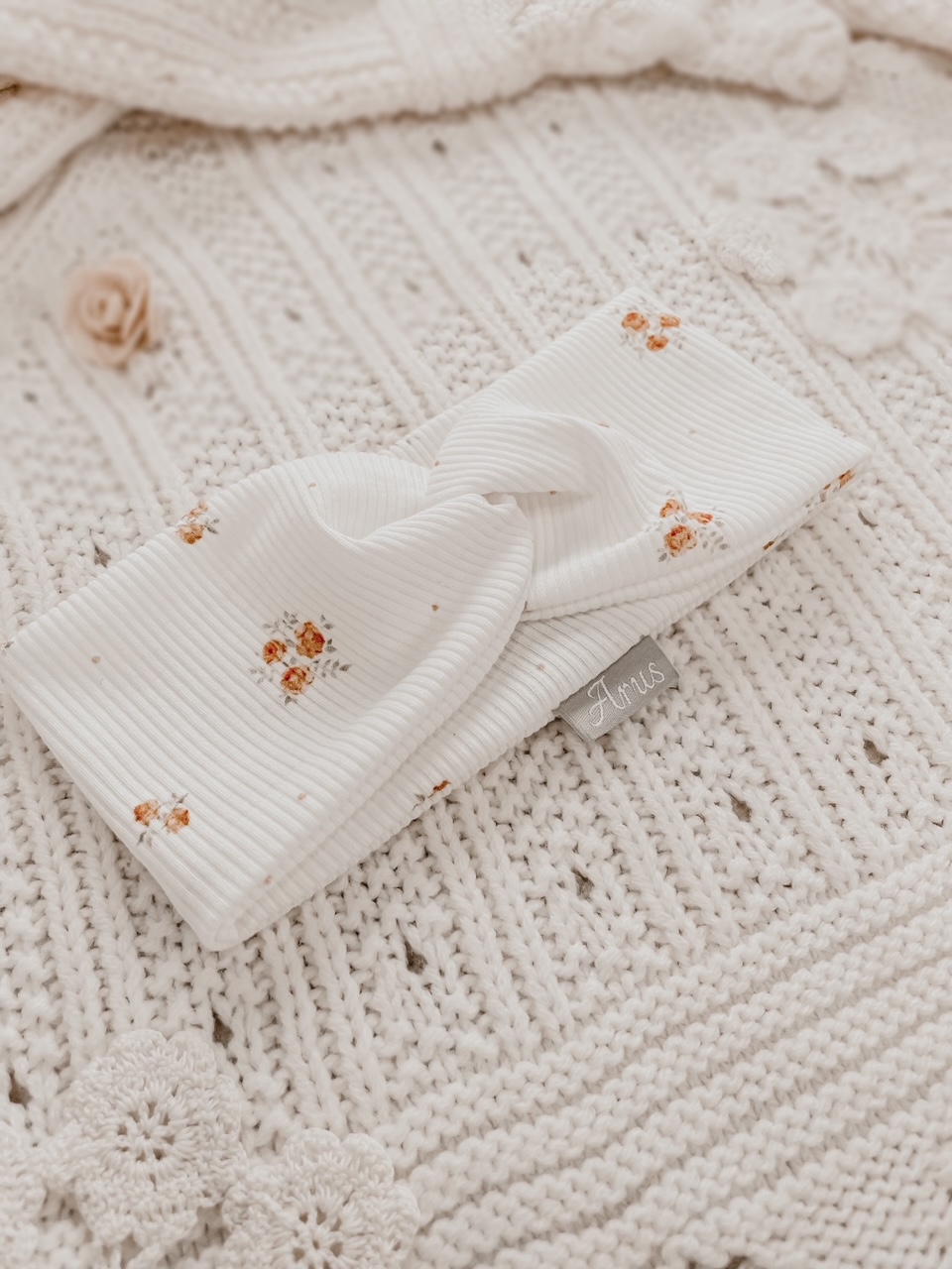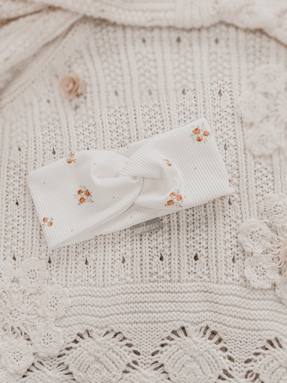 Opaska dla niemowląt i dzieci stworzona w stu procentach z bawełny prążkowanej. Idealnie sprawdza się w upalne dni. Wykonana ręcznie z dbałością o każdy szczegół doda maluszkowi uroku.