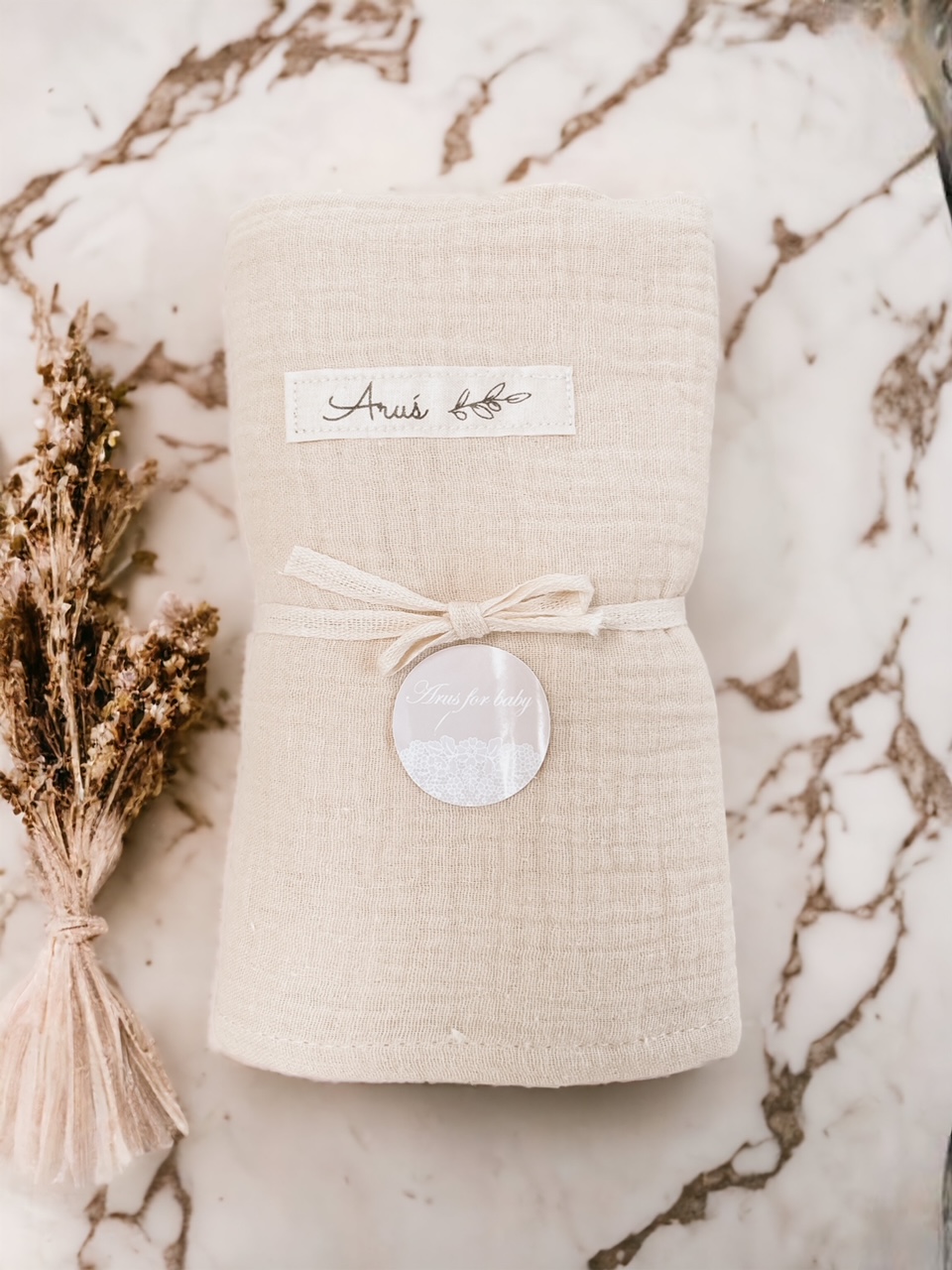 Otulacze wykonane w 100% z muślinu kreszowanego bawełnianego tzw doubble gauze. Tkaniny w 100% naturalne bawełniane, certyfikat Oeko-Tex Standard 100 i.