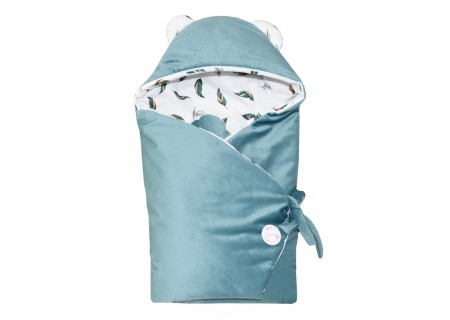 Otulacz śpiworek 100x100 z kapturkiem do fotelika velvet/bawełna (morski +piórka)