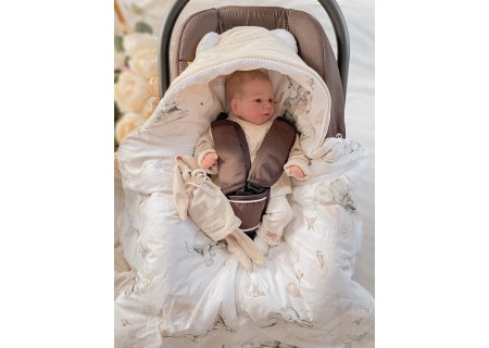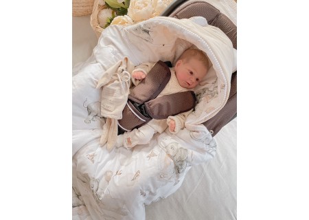 Otulacz śpiworek z kapturkiem do fotelika velvet/bawełna (beż +słonik z tęczą)