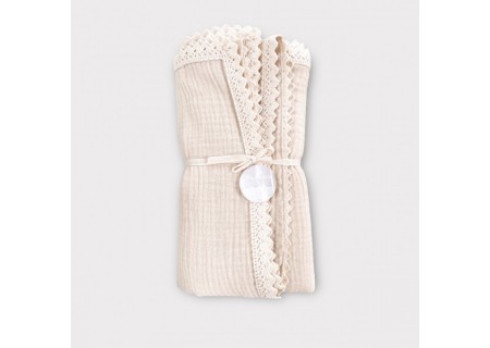 ♥ Kocyk Muślinowy 100x75 z koronką waniliowy beż