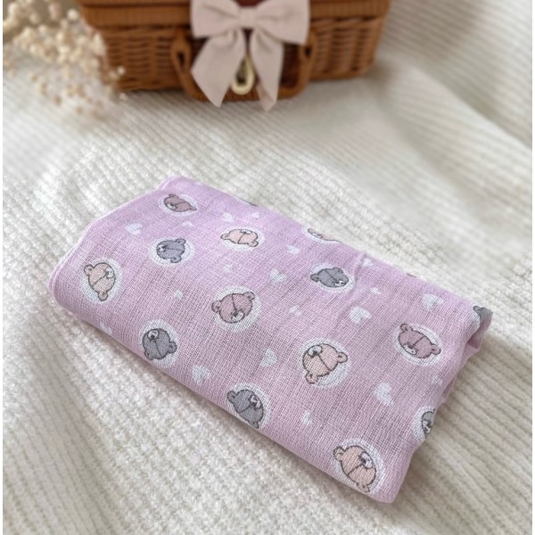 Pielucha pieluszka tetrowa 70*80 ( małe misie różowe)