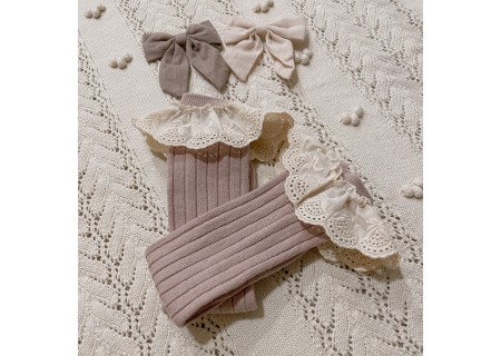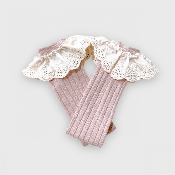 Podkolanówki z falbanką rozmiar uniwersalny pudrowo różowe