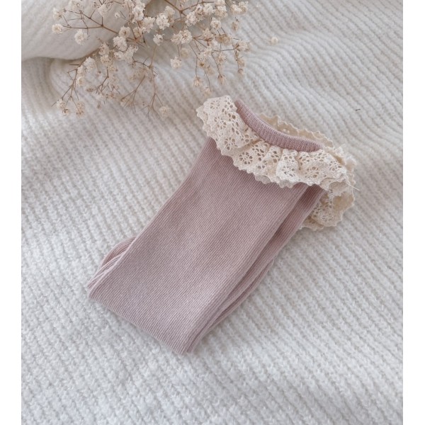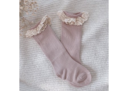 Bawełniane podkolanówki z elastanem i bawełnianą koronkową falbanką