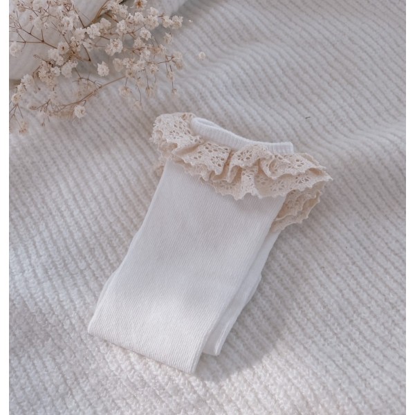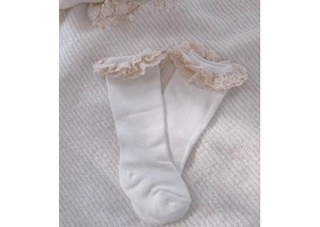 Bawełniane podkolanówki z elastanem i bawełnianą koronkową falbanką