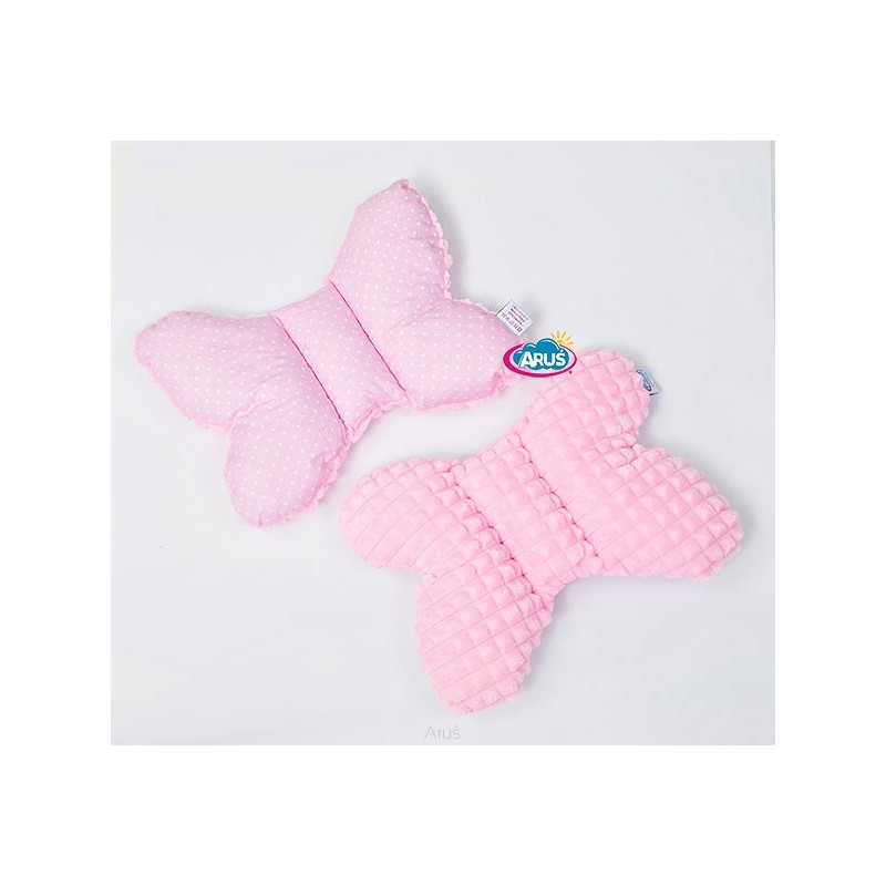 Poduszka motylek antywstrząsowa Minky (rozowy+kropki na różu)