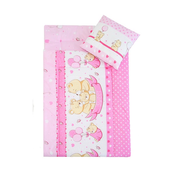 Pościel do przedszkola z wszytym wypełnieniem 220*80 (różowe misie sweet)
