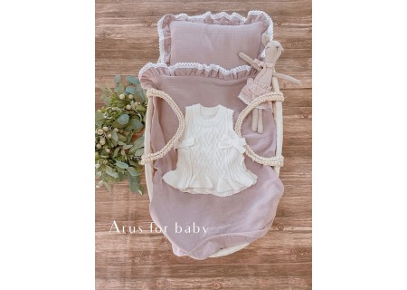 Otulacz/ kocyk od góry wykończony falbanką z koronką.