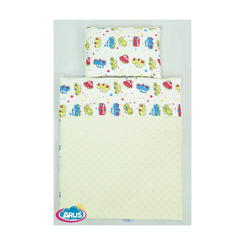 Pościel do wózka / kołyski MINKY (kremowy+kolorowe autka)