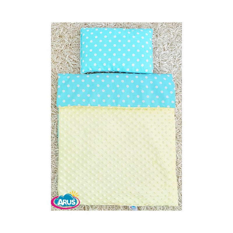 Pościel do wózka / kołyski MINKY (kremowy+turkus grochy)
