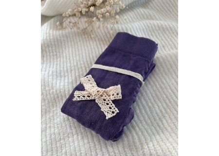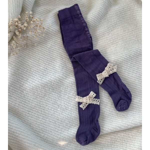 Prążkowane rajstopy bambusowe z koronką śliwkowe 62/68