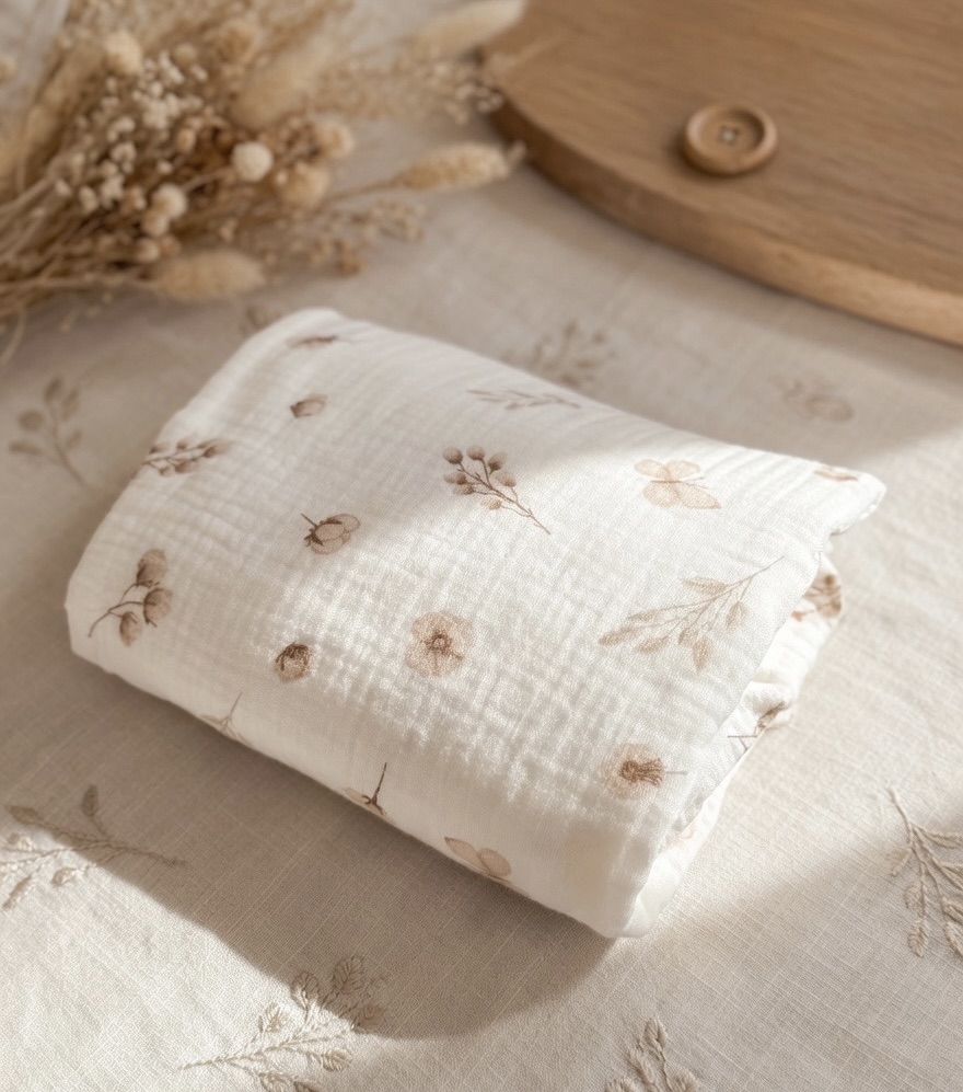 Muślin to jeden z najbardziej czystych, najprostszych oraz wyjątkowo delikatnych materiałów. Muślin bawełniany charakteryzuje się cienkim splotem, dzięki czemu jest przewiewny i lekki. Ma to także wpływ na zdolność materiału do oddychania. Muślin Bawełniany zmniejsza ryzyko przegrzania u maluszka, dbając o utrzymanie właściwej temperatury. Dzięki temu dziecko może cieszyć się komfortem i zadowoleniem przez cały rok, nawet w upalne dni. Kolejną zaletą muślinu tkanego z bawełny, jest odporność na wielokrotne pranie. Materiał nie ulega zniszczeniu, zyskując jedynie na dodatkowej miękkości. Jest to najlepszy wybór wśród tkanin, myśląc o malutkich dzieciach! Jeśli szukają Państwo idealnego materiału dla swojego maluszka to jest to właśnie muślin.