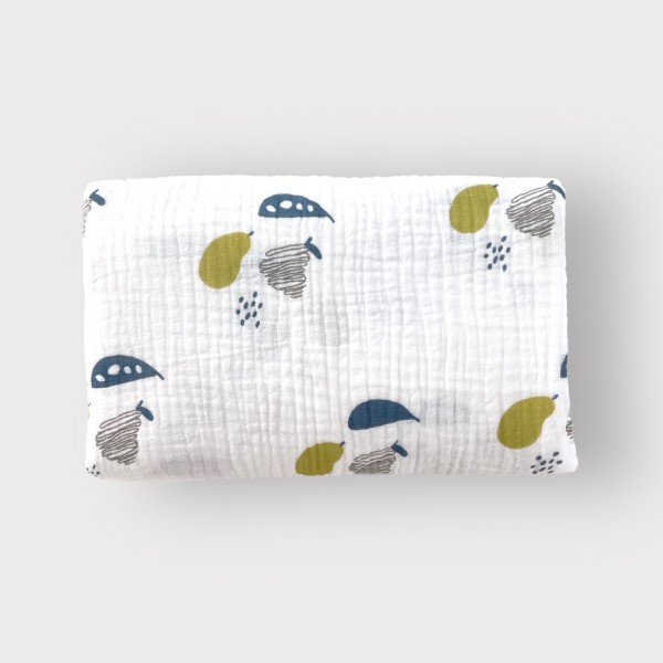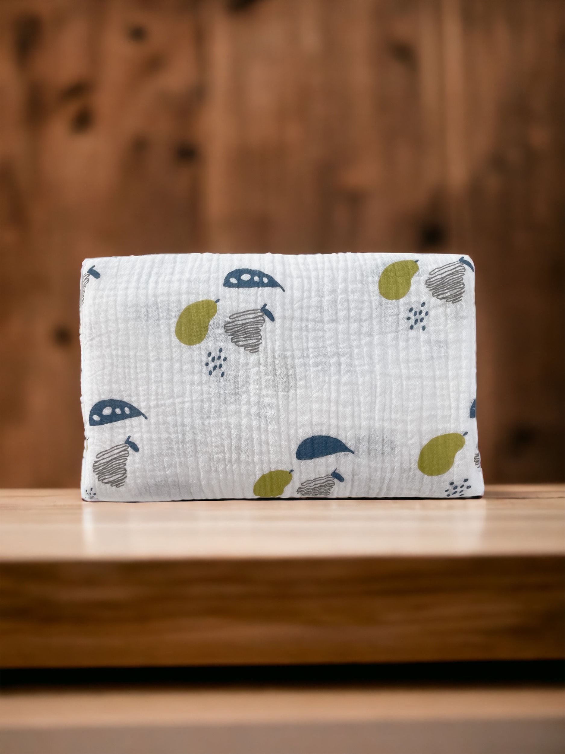 Prześcieradło z gumką, wykonane z muślinu bawełnianego.